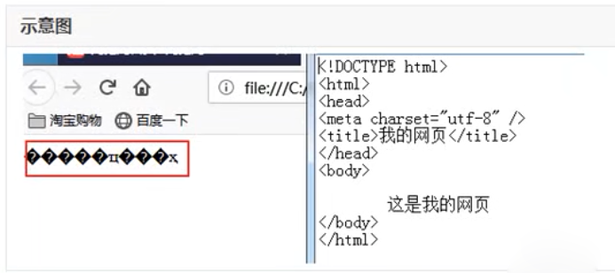这种情况就是乱码,是因为我们输入的中文,往往计算机保存的时候,最终都要转成2进制的数据形式,也就是说有一个编码的过程,在保存文件的时候默认使用的是ANSI编码格式,浏览器显示文件中内容的时候,还需要将2进制的数据转换成文字形式显示出来,也就是说还有解码的过程,浏览器被指定为utf-8来解码,也就是说编码和解码不一致所造成的乱码。